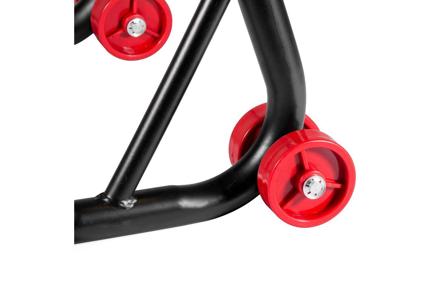 - Acero Reforzado: Construido en tubo de acero de 32 mm, este caballete proporciona una rigidez estructural superior, eliminando cualquier tipo de flexión lateral durante la elevación.