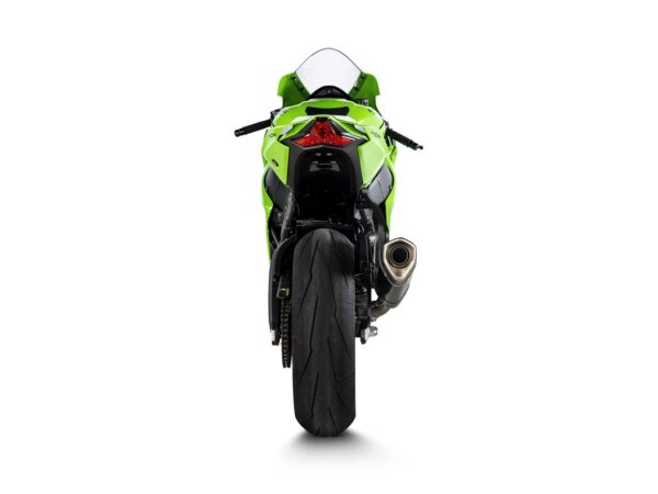 El uso de titanio para las tuberías y las partes internas del silenciador crea una reducción adicional en el peso. Un tubo de enlace opcional está disponible para mejorar el rendimiento y un soporte de silenciador de fibra de carbono opcional para mejorar la apariencia. Cuando se usa con el tubo de enlace, la ECU debe volver a reprogramarse.