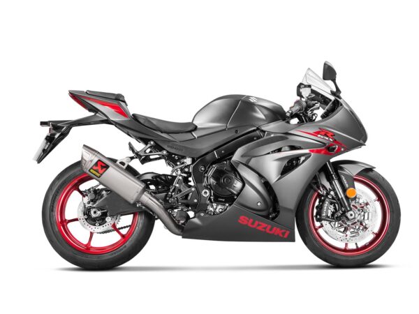 El silenciador y los cabezales están construidos completamente de titanio. Su forma distintiva fue desarrollada especialmente para la Suzuki GSX-R1000 basada en la vasta experiencia de carreras de Akrapovič.