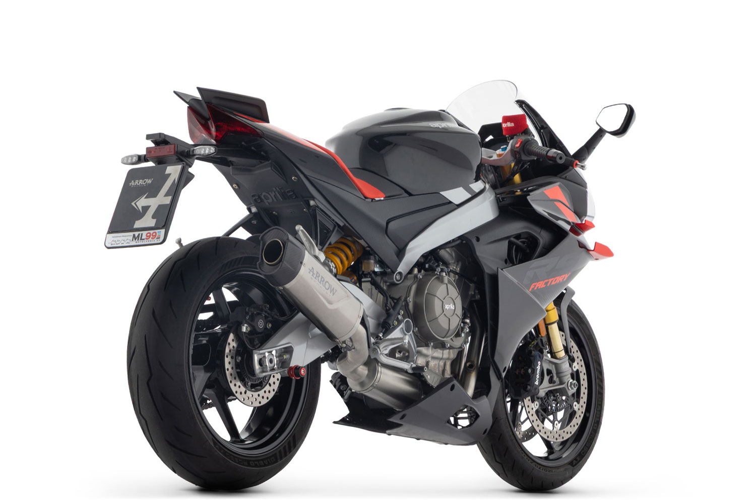 - Ahorro de Peso Real: Sustituir el sistema de escape original por el conjunto Arrow supone una reducción de peso drástica, mejorando la relación peso-potencia de tu Aprilia.