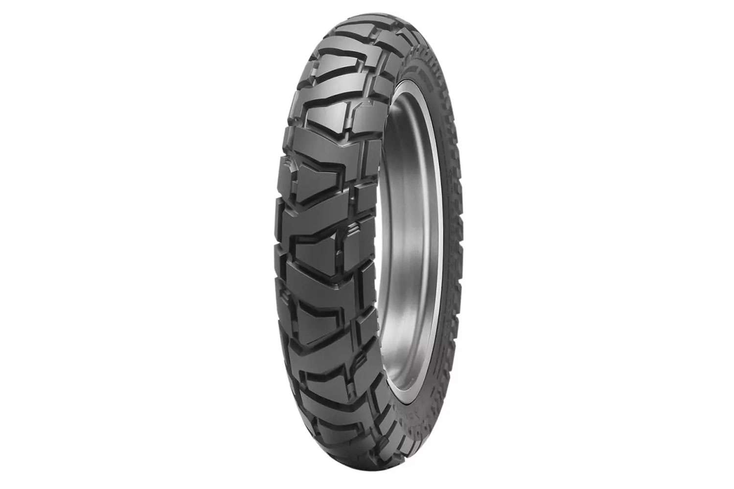 - El neumático delantero de 21″ consiguió los objetivos de rendimiento de Dunlop sin este detalle adicional, ya que el mayor tamaño de los bloques de la banda de rodadura proporciona el nivel deseado de tracción, sin la necesidad de perillas ahuecadas